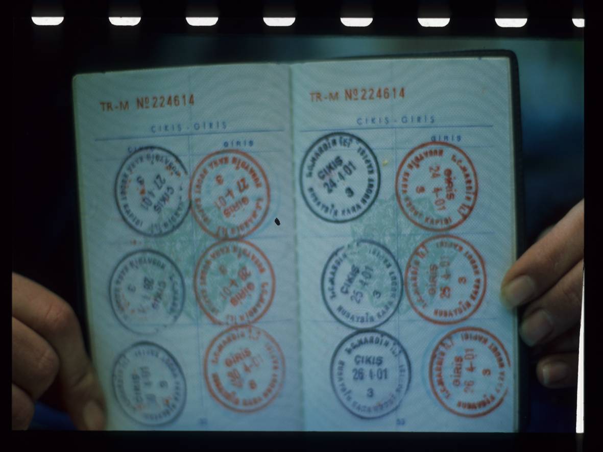 1st and 2nd figure: Both photographs show how poor and dependent they are on the state and how they are kept in a circle of nationalism and hatred as border guards. Title: Two Towns at Borders: The first is from a tiny border town with Armenia (Çıldır, taken in 2006). The town’s entering point “Welcome to the land of heroes, let the whole world know that we never leave a piece of our homeland to the enemy while the life is alive” (this refers to Armenia). The second is from the gate on the South-Eastern border between Turkey and Iraq: Daily bread. This photo shows the border smugglers’ passports’ daily stamps. They serve as porters for a daily fixed wage, paid by the traders, but still have to have a government-approved passport, which is a tourist passport (2002).