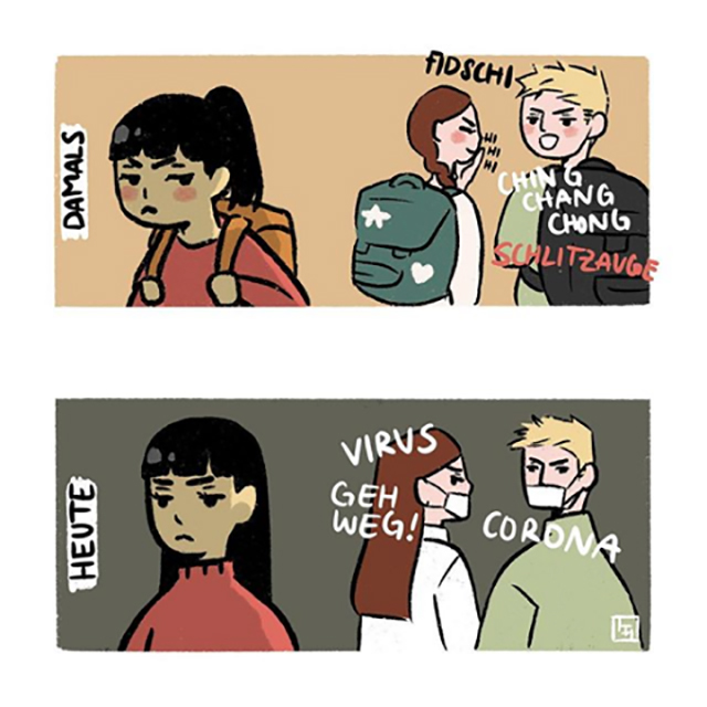 Angst ist kein Rassismus – aber wenn jemand beim Anblick einer asiatisch gelesenen Person sofort an das Virus denkt, allerdings bei einer weißen2 Person nicht auf die Idee kommt, dass sie gerade in Wuhan oder Ischgl gewesen und infiziert sein könnte, dann sind das sehr wohl rassistische Denkmuster, die wir alle zu einem gewissen Grad internalisiert haben. Doch weil anti-asiatischer Rassismus in Österreich und vielen anderen Teilen der Welt bis heute ein unausgesprochenes Problem darstellt, und Asiat*innen im Vergleich zu anderen marginalisierten Gruppen weniger offensichtlich diskriminiert oder Attacken ausgesetzt wurden, werden rassistische Vorfälle seit dem Ausbruch des Coronavirus nach wie vor von vielen verharmlost, die es nicht verstehen können, was es bedeutet, sein Leben lang seine Hautfarbe oder andere körperliche Merkmale erklären zu müssen oder aufgrund dessen als Bedrohung wahrgenommen zu werden.